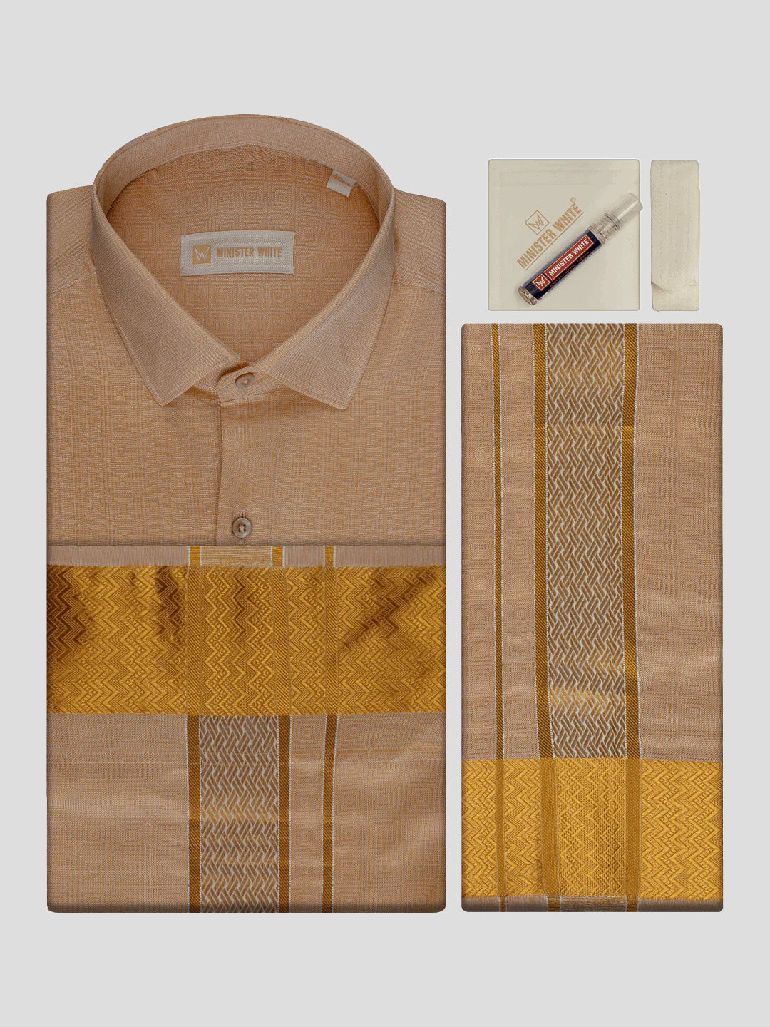 Jacquard Art Silk Biscuit Shirt & Jari Border Dhoti Combo