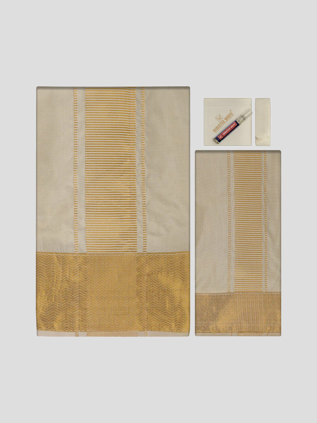 This combo is specially designed for the Groom to look perfect, featuring premium art silk combinations with new color shades. Traditional groom's wedding set should be modern, stylish, unique, and elegant. Minister White always provides the best South Indian wedding dress for men who respect our cultural and ethnic values. Additionally, these Art Silk pieces come with artistic patterns that look luxurious for the most important day.