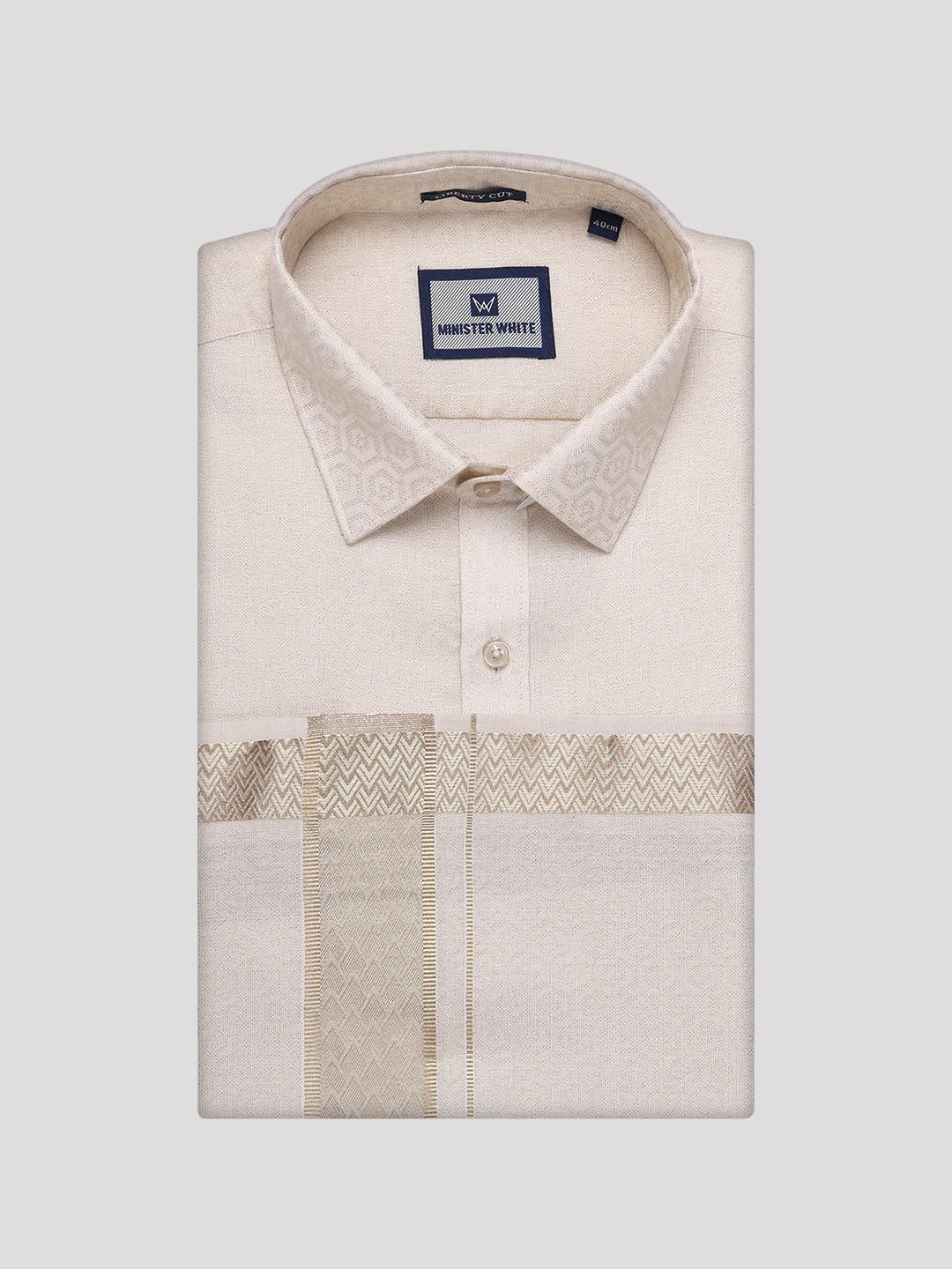 Specification of Men's Beige Tissue Jacquard Shirt with Matching Dhoti Combo Zeebra