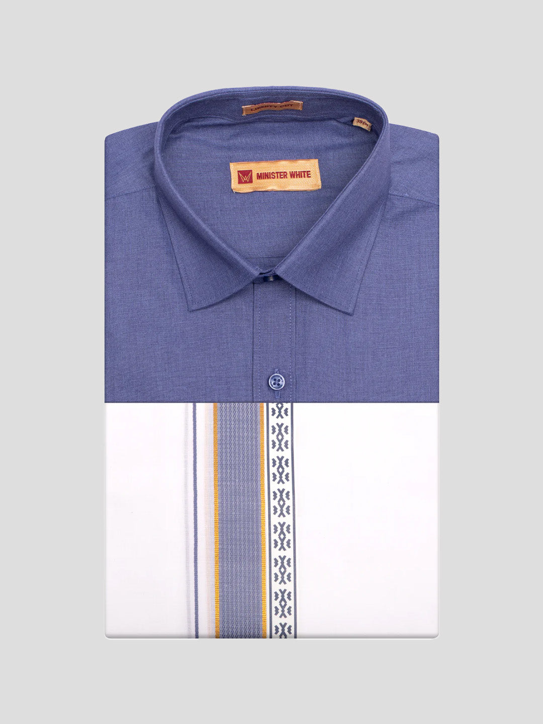 Introducing our Men's Blue Color Shirt with Matching Border Dhoti Combo, a perfect blend of style and comfort for your traditional and contemporary wardrobe needs. Elevate your fashion game with this versatile ensemble that effortlessly combines modern trends with timeless elegance.