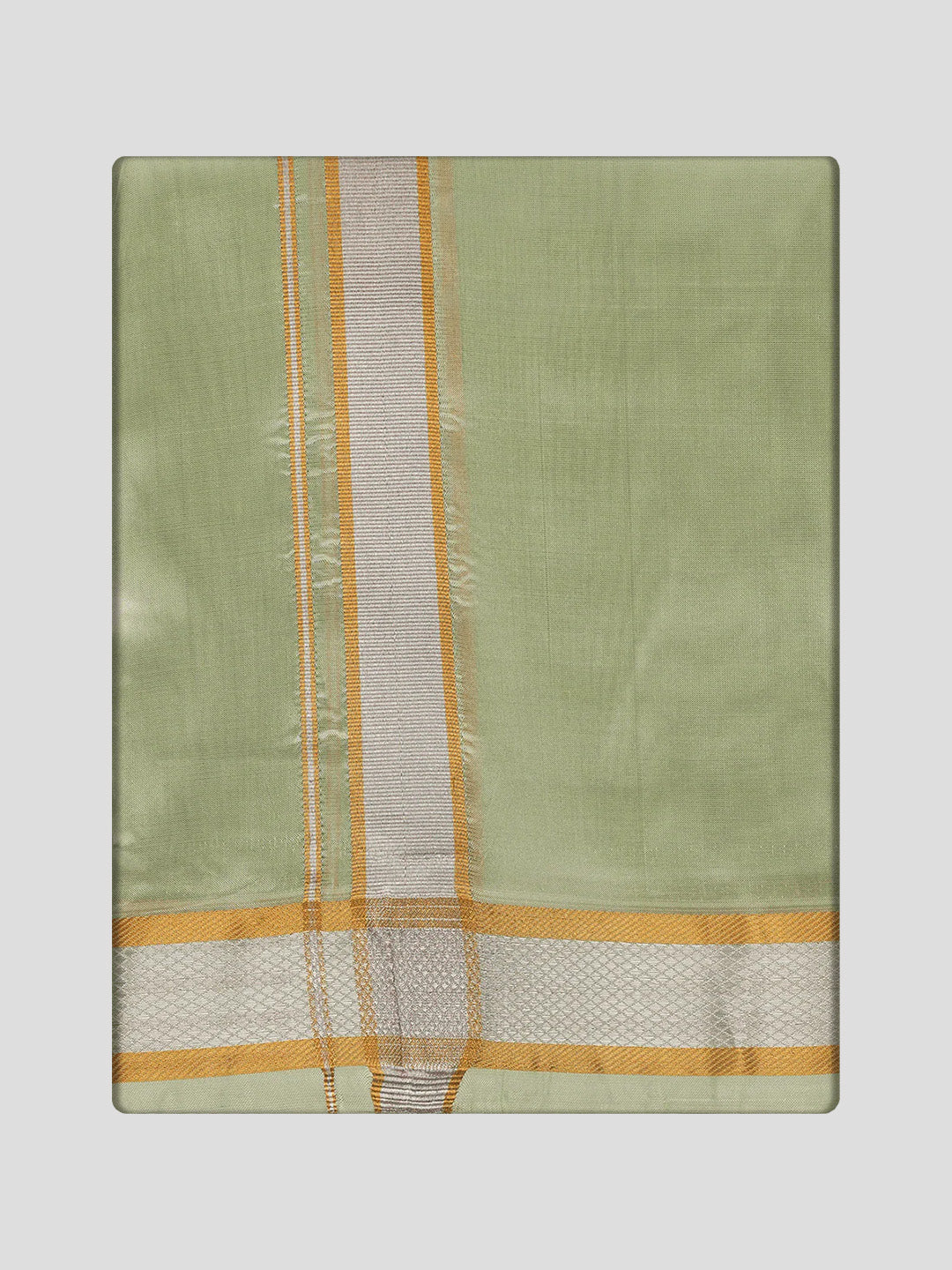 Embrace tradition in style with this premium pista green art silk shirt bit and gold and silver jari border dhoti combo. The shirt bit is unstitched, giving you the freedom to tailor it to your perfect fit. Made from soft art silk, it ensures comfort and a graceful drape. The gold jari border dhoti adds a festive, regal charm. Ideal for weddings, poojas, and traditional gatherings.