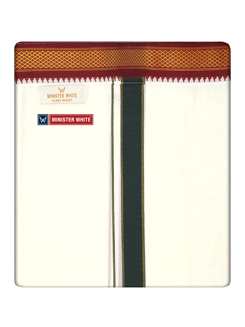 Specification Of Mens Cotton Cream Double Layer with Myilkhgan Border Velcro Pocket Dhoti - Kanishka