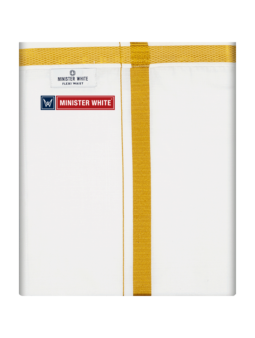 Mens Cotton White Double Layered with Gold Jari Velcro Pocket Dhoti - Energy
