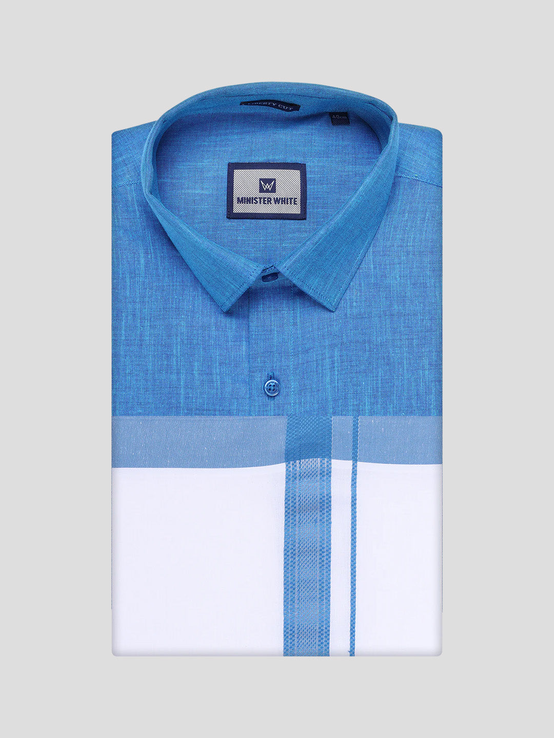 Specification Of Mens Blue Colour Shirt with Matching Fancy Border Dhoti Combo Lemax