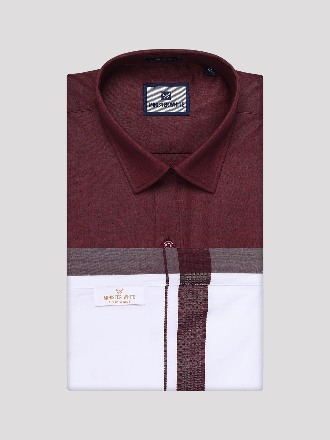 Specification Of Men's Maroon Shirt with Matching Border Flexi Dhoti Combo Casper Flexi