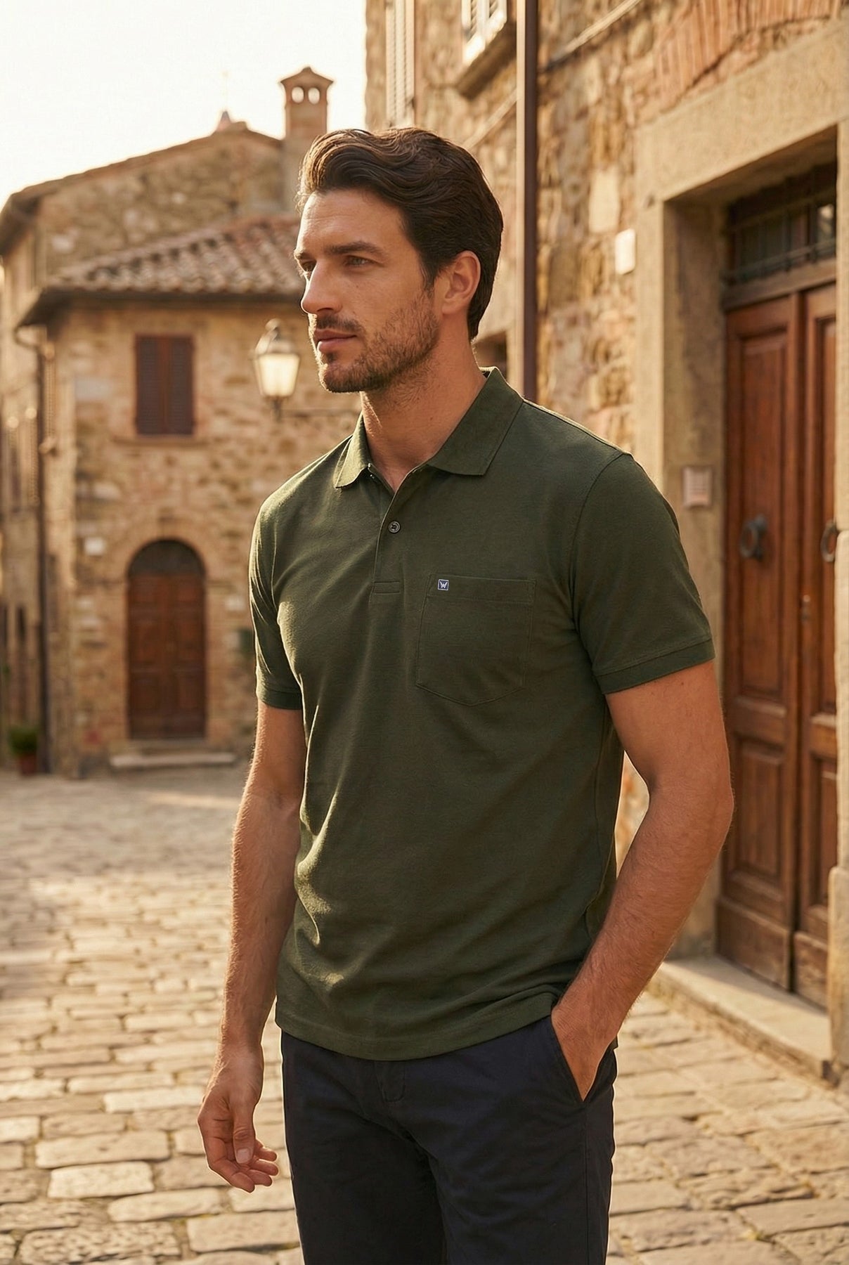 Description of Men's Olive Regular Fit Polo T-Shirt with Pocket Striker