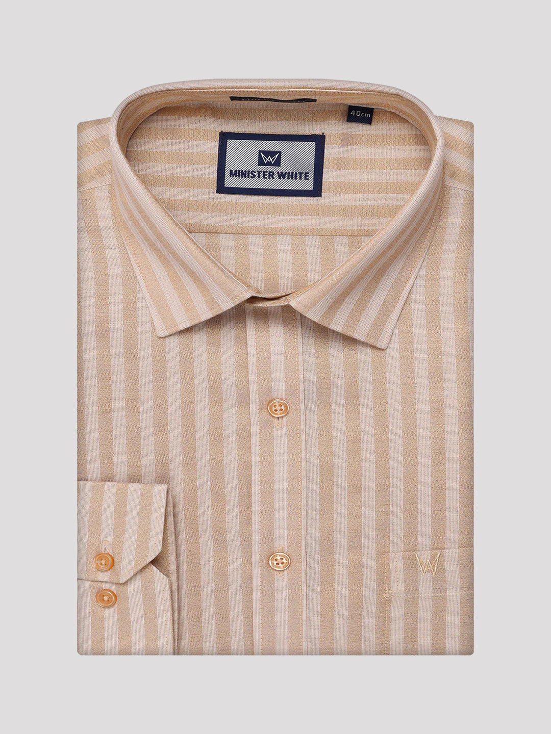 Specification Of Men's Tissue Stripes Gold Shirt & Jari Border Dhoti Wedding Combo Finely