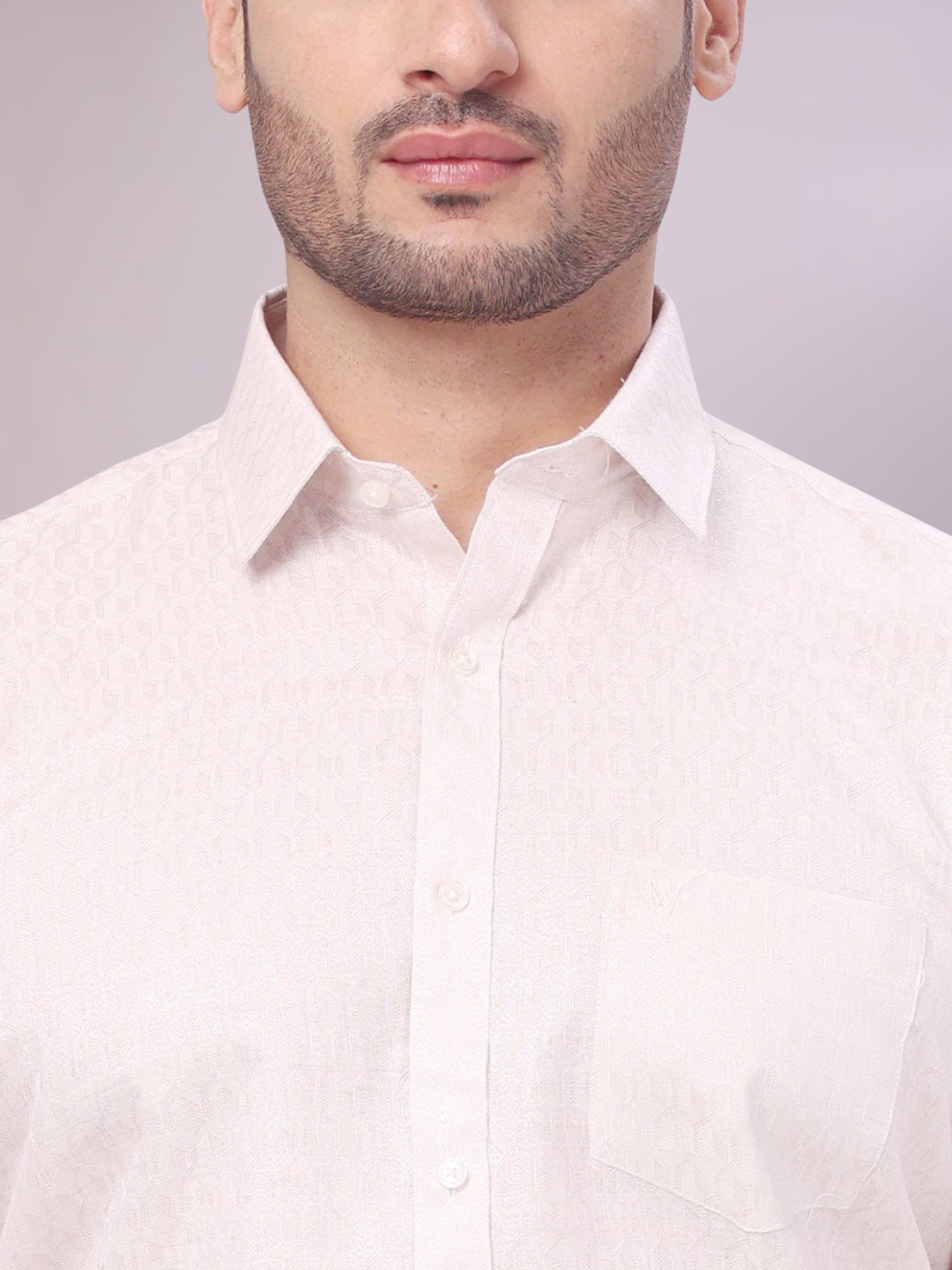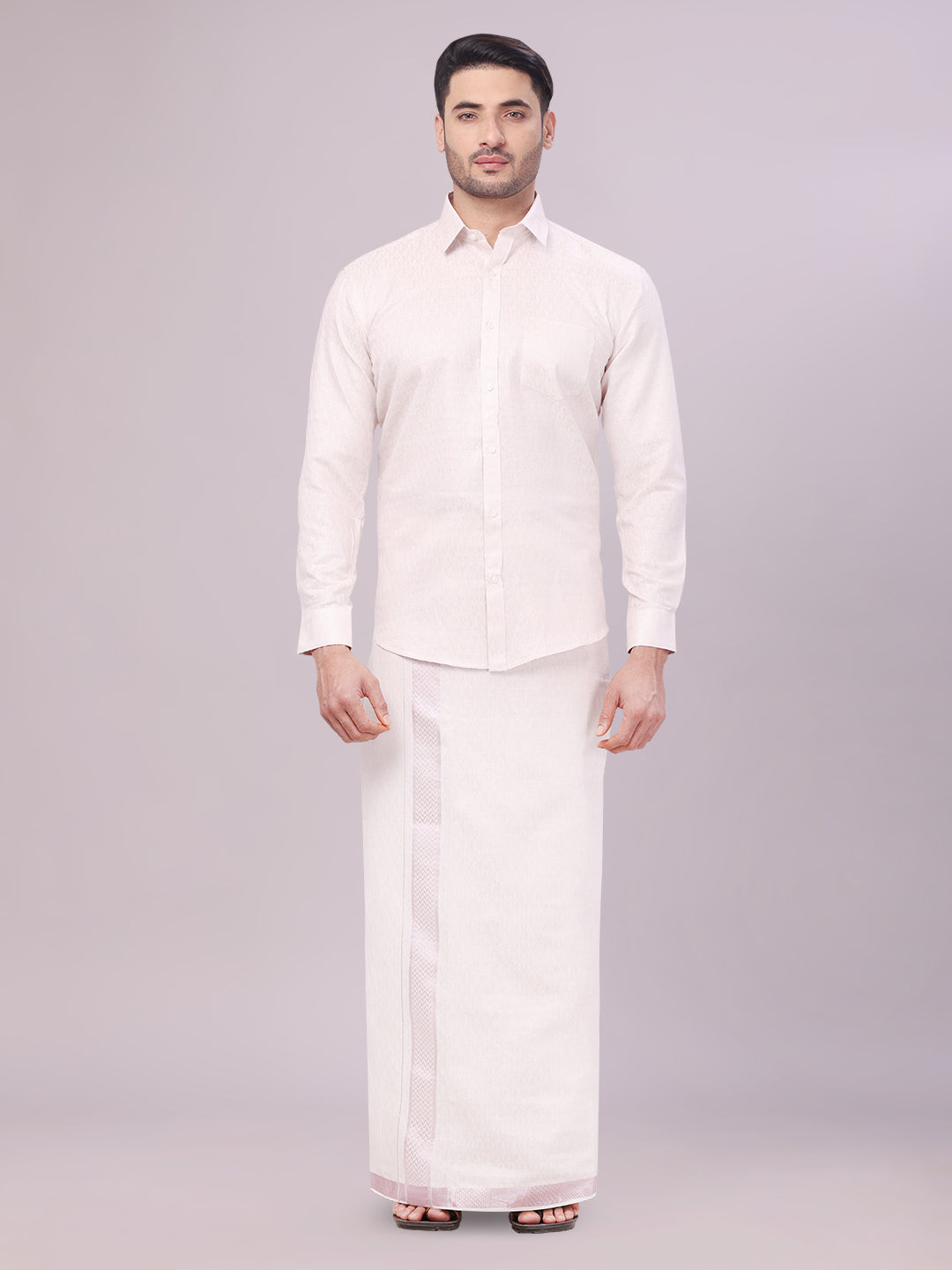 Mens Light Rose Colour Jacquard Shirt with Matching Dhoti Combo Zeebra by Minister White