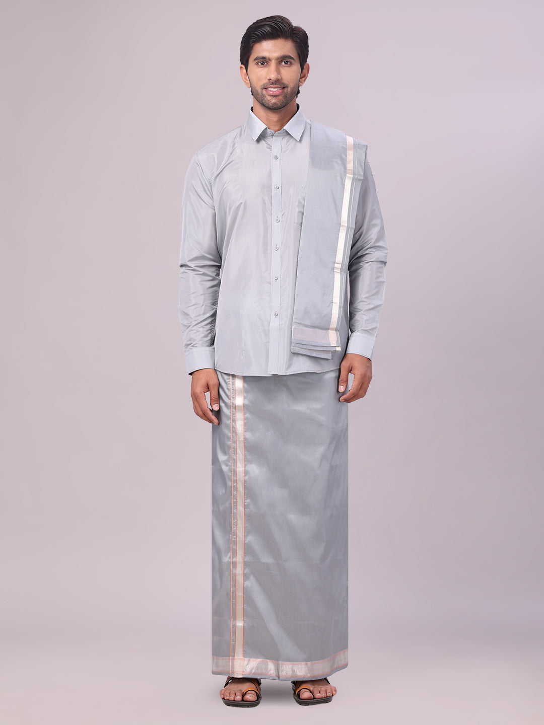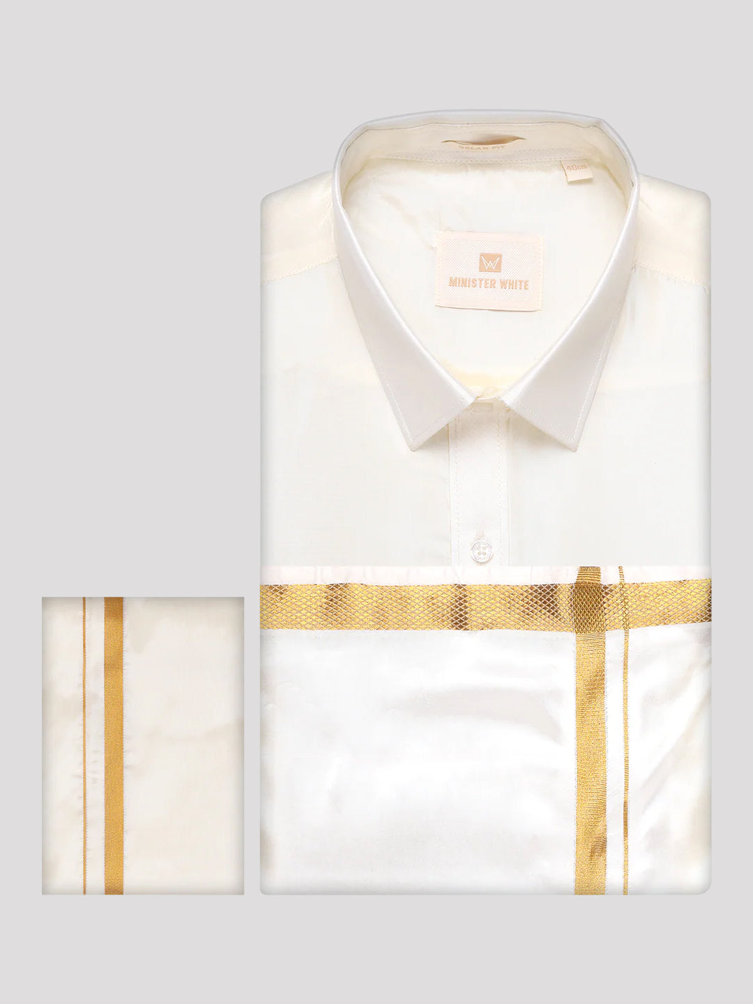 Celebrate your special moments in tradition with Minister White’s Wedding Silk Combos. Thoughtfully crafted for grooms, groomsmen, and close family, each combo features a rich silk shirt paired with a beautifully stitched silk dhoti, perfect for muhurtham, reception, or any wedding celebration.