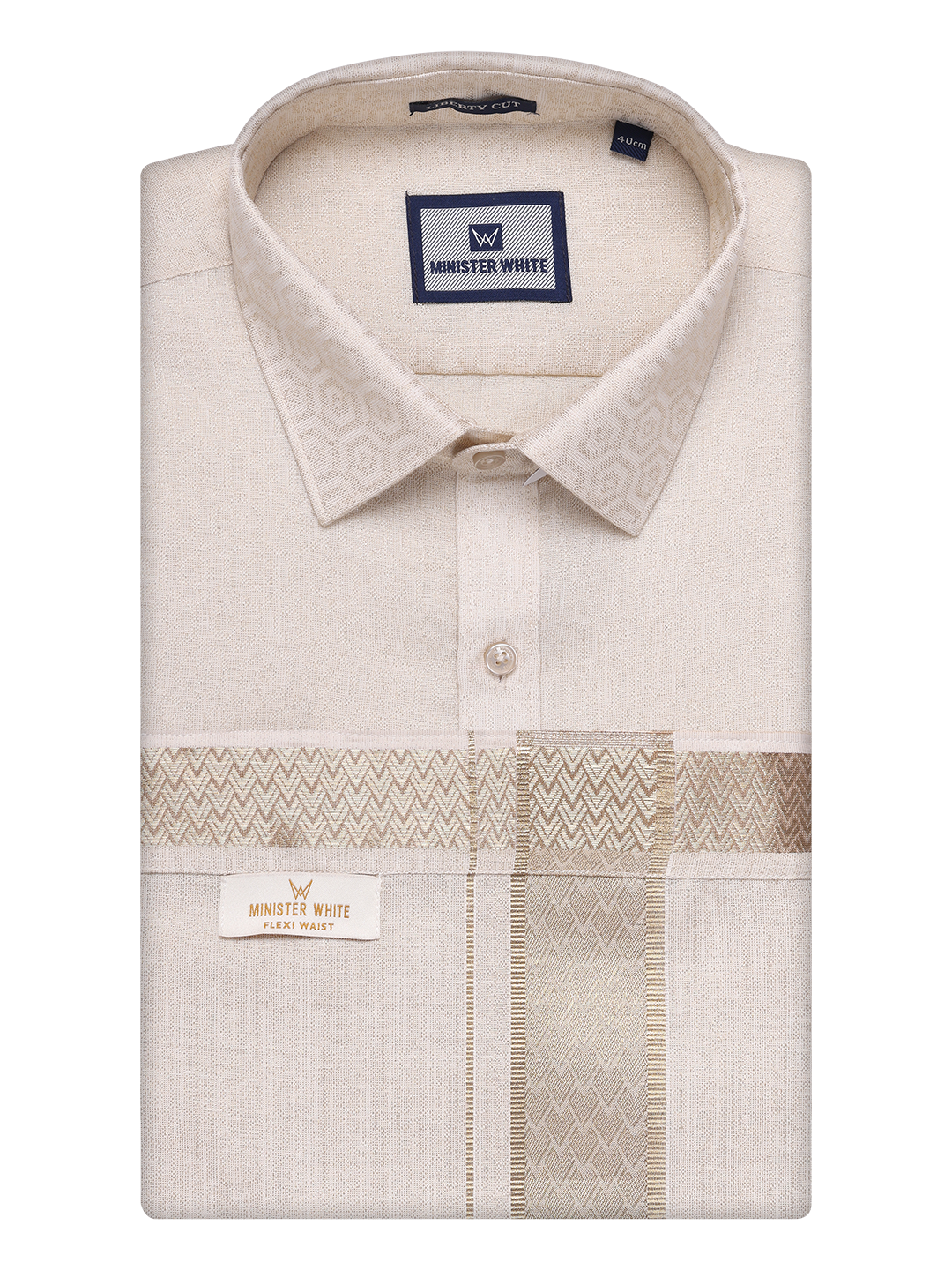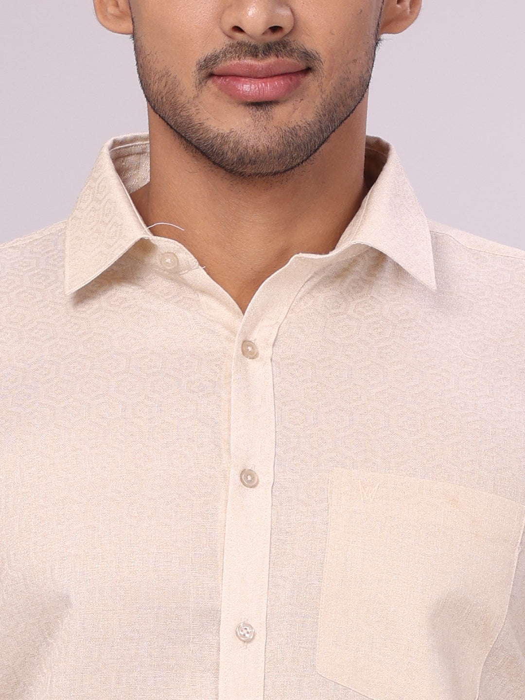 Specification of Mens Beige Tissue Jacquard Shirt with Matching Flexi Dhoti Combo Zeebra