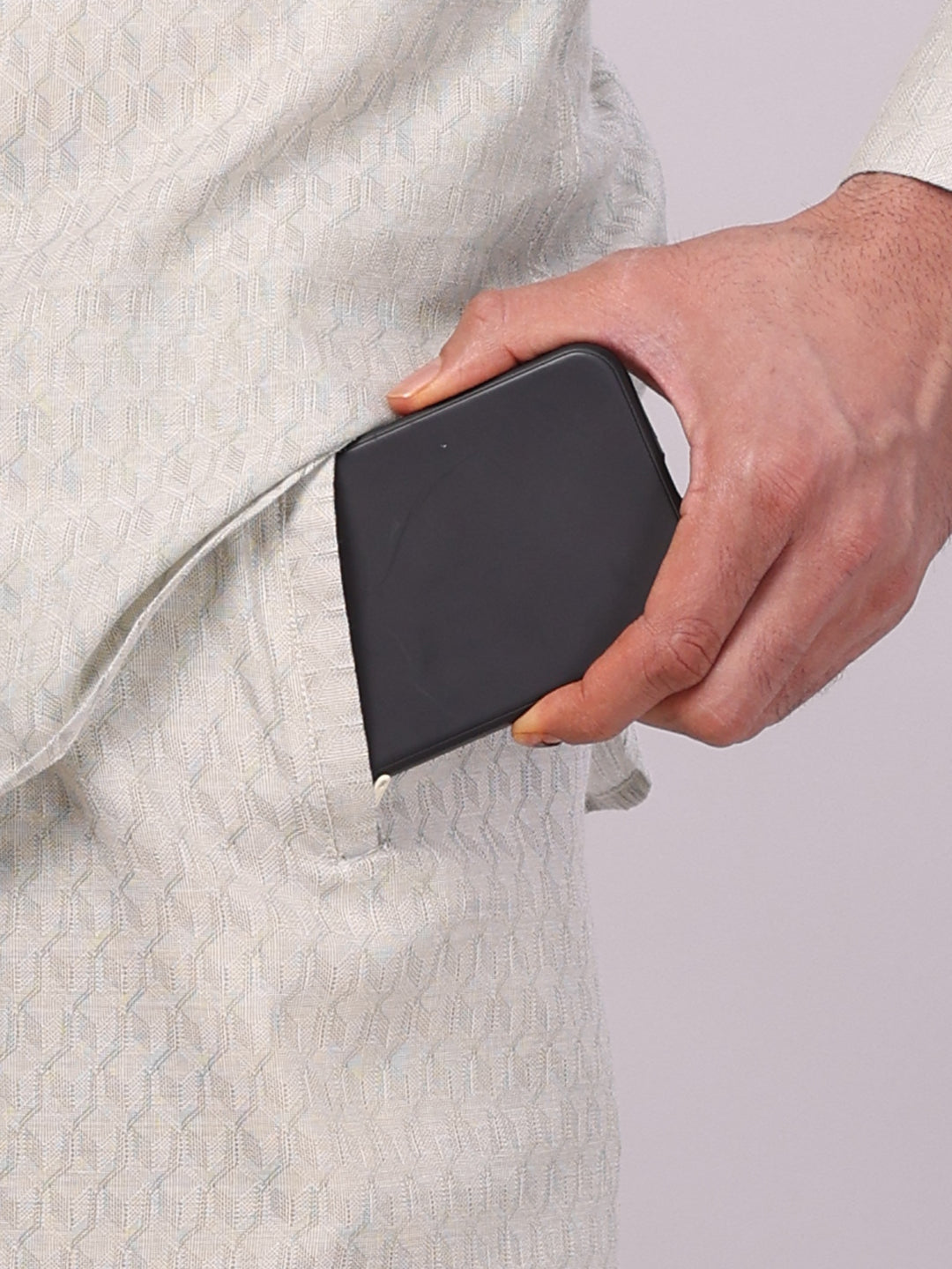 Mens Olive Green Colour Jacquard Shirt with Matching Flexi Dhoti Combo Zeebra by Minister White